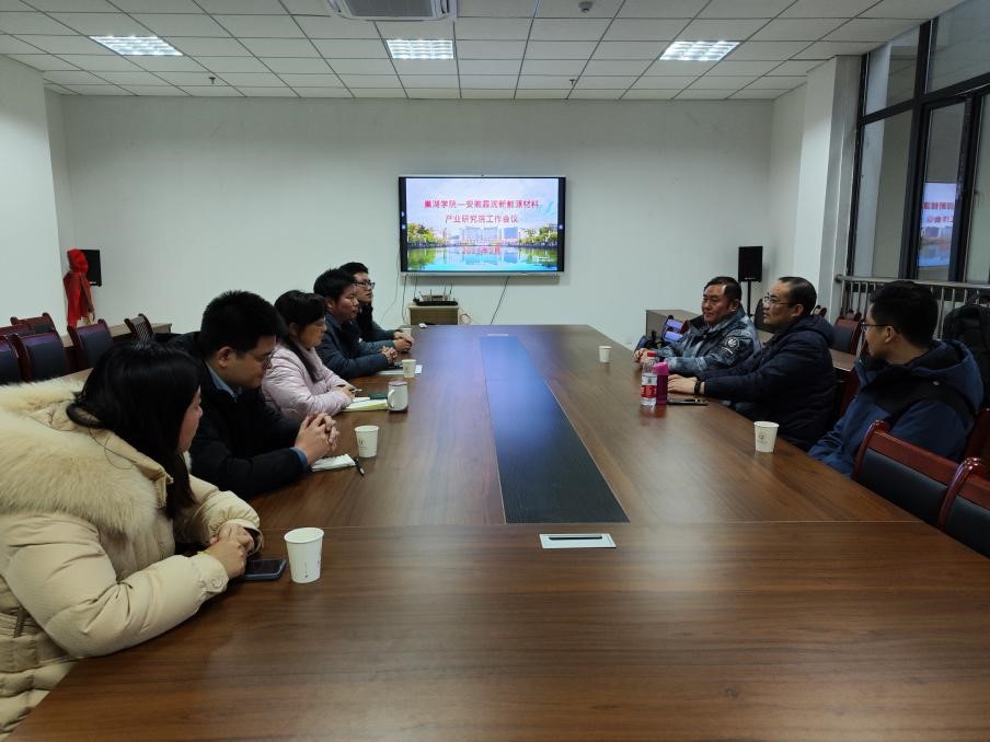 2月17日下午,365bet体育电视直播_365bet世界杯欢迎您_365直播平台app下载学院-安徽霏润新能源材料产业研究院在化材学院会议室召开工作会议谋划2023年度主要工作。会议由李宏林主持。安徽霏润董事长吴国宝、技术总监王安苗博士、工程师王金银、365bet体育电视直播_365bet世界杯欢迎您_365直播平台app下载学院化材学院副院长王小东、李宏林及产业研究院新能源方向骨干教师参加会议。