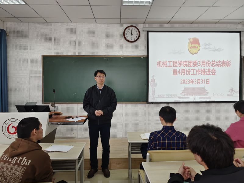 为总结3月份的团学工作,同时布置4月份主要工作,机械工程学院团委学生组织于2023年3月31日中午在崇学楼南210举行机械工程学院团委3月份总结表彰及4月份工作推进大会,学院党委副书记李融出席会议,团委书记苏洁红、学生组织成员、21级和22级各班班长团支部书记参加会议。会议由团委副书记方钱主持。