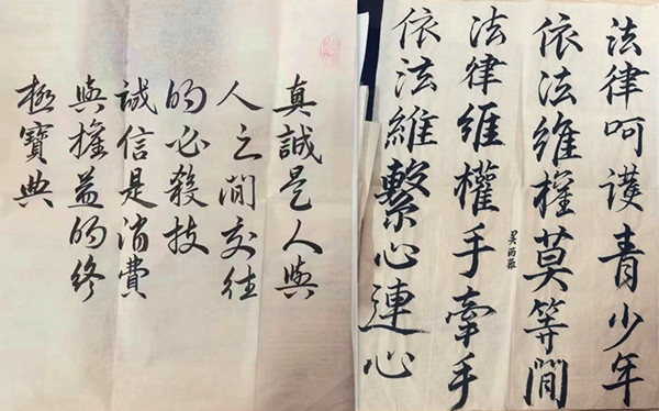 3月10日至17日,创意标语大赛。参赛选手们使用宣纸书写了一幅幅或隽秀或清逸的毛笔字,不仅展现出自身的书法功底,也体现了对权益维护的深刻认识。
