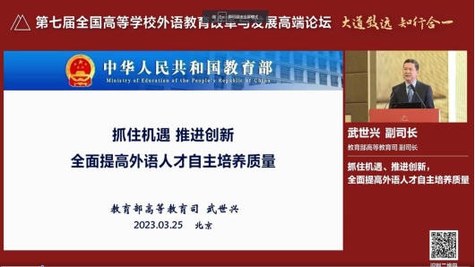 为了探索外语教育现代化的途径与方法,3月25日-26日,第七届全国高等学校外语教育改革与发展高端论坛在北京举办。本次高端论坛的主题为“大道致远,知行合一”,以党的二十大精神为指引,共探外语教育现代化建设新路径,共绘外语教育高质量发展新华章。师范英语教研室组织全体成员也在云端收看了本次论坛盛况。
