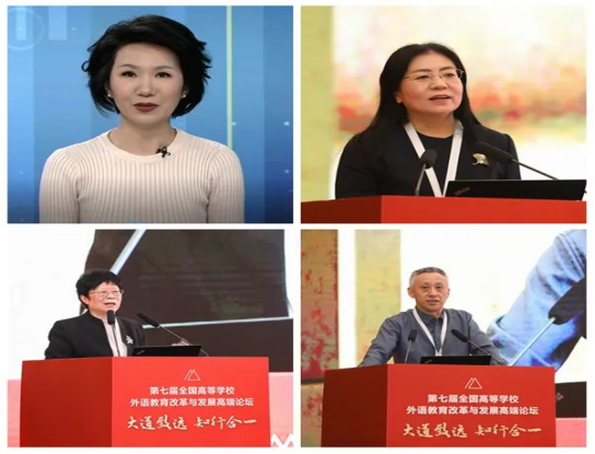 此外,中国国际电视台资深主持人刘欣女士、北京大学副校长宁琦教授、北京外国语大学文秋芳教授、西安电子科技大学副校长王泉教授都作了相关的主旨报告。各位专家从自身出发,结合自身的战略眼光,提出了外语教育在现代化背景下的发展道路,构建教、学、管、环、评新型数字化支撑体系,推进外语教育数字化转型。