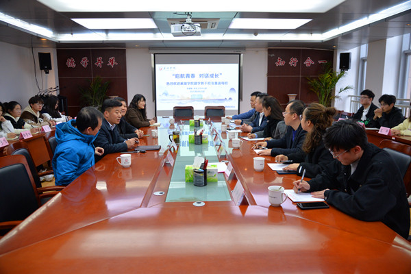 为进一步增进校友与学校的紧密联系,团结凝聚广大校友力量,充分挖掘校友资源,引导在校大学生树立正确的择业观、就业观、奋斗观,3月25日下午,校团委、校友工作办公室在第一会议室举办 “启航青春对话成长”团学骨干校友重返母校座谈交流会。365bet体育电视直播_365bet世界杯欢迎您_365直播平台app下载学院原团委书记、机械工程学院党委书记何照泽,校党委宣传部副部长郭超、校友工作办公室副主任郑向阳、校团委副书记吴娜、团学骨干校友代表和在校团学骨干学生代表参加座谈会。座谈会由郭超主持。